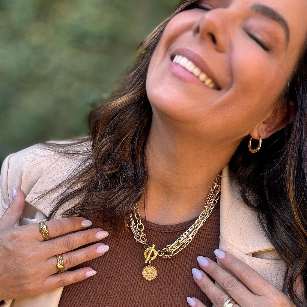 O Colar Bento é uma releitura especial do nosso clássico colar Mosteiro, criado a pedidos de vocês, clientes. Ele chega com corrente toda no dourado, acabamento elegante e banho antialérgico, ideal para quem busca sofisticação com conforto. Um toque atemporal para o seu dia a dia ou para compor aquele look especial.