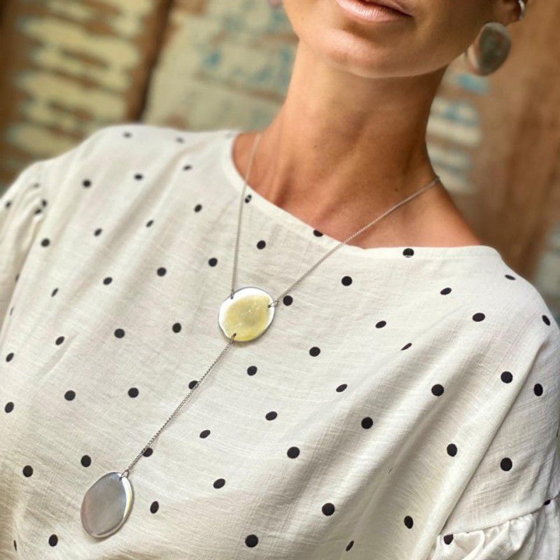 COLAR FEITO ARTESANALMENTE EM ALUMINIO RECICLADO, CORRENTE EM AÇO INOX