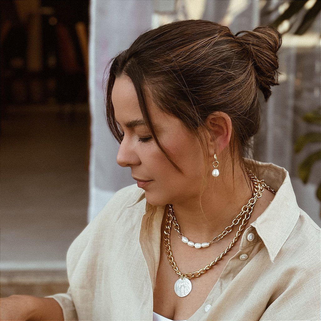 O Brinco Afeto, é um clássico, com uma argola com banho dourado hipoalergênico, super delicado e confortável. O charme fica por conta do pingente de pérola barroca, que traz sofisticação e elegância, dificilmente uma mulher erra na escolha de compor seu visual com ele.