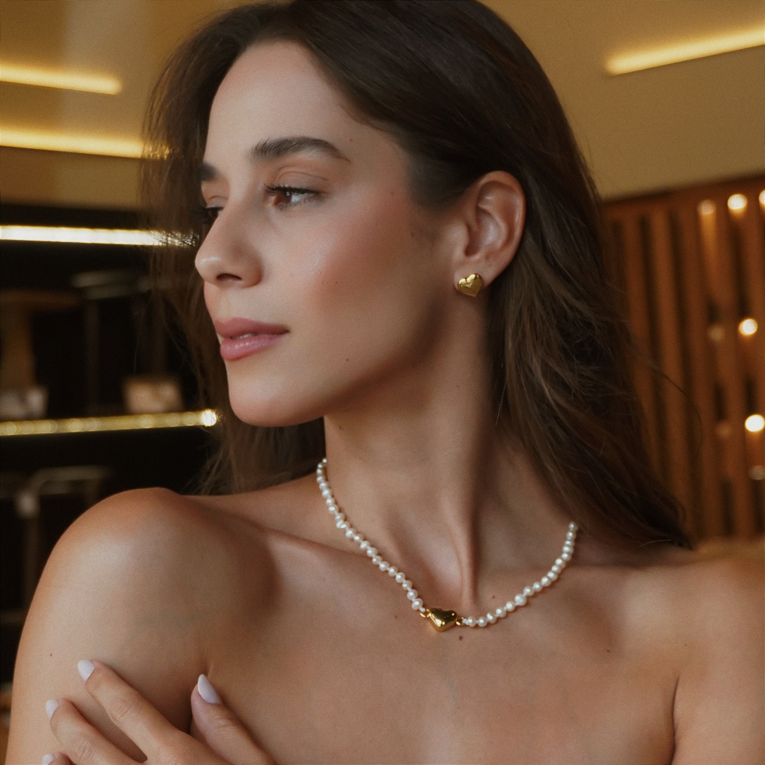 O Brinco Amor, é uma peça perfeita para usar no dia a dia ou em ocasiões especiais. Um coração com banho dourado que traz durabilidade e um brilho incrível. Perfeito para composição com o Colar Dom.