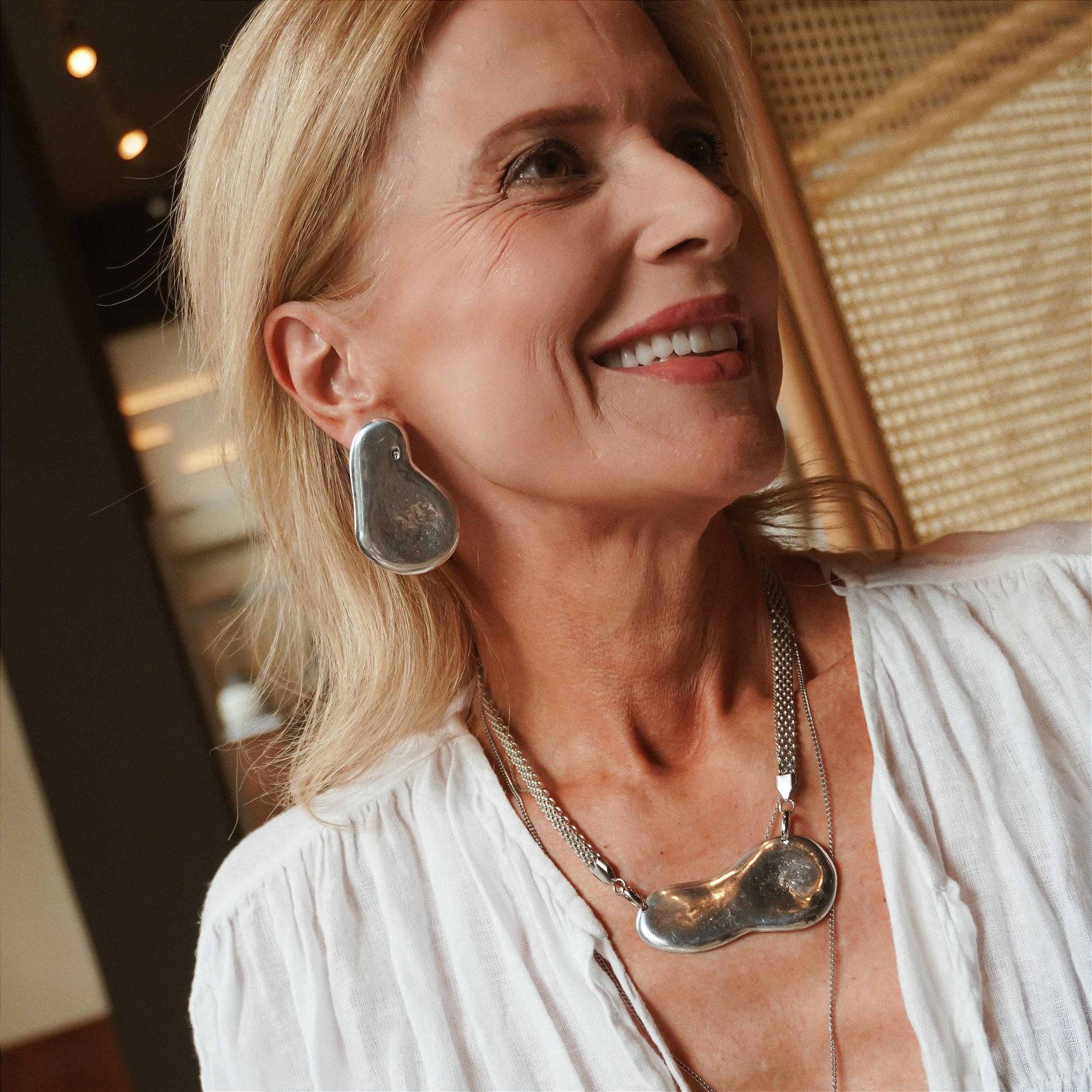 Produzida manualmente, esta peça não se repete. As formas orgânicas do alumínio tornam cada acessório exclusivo, refletindo a beleza da imperfeição e a força de uma identidade que não segue padrões.